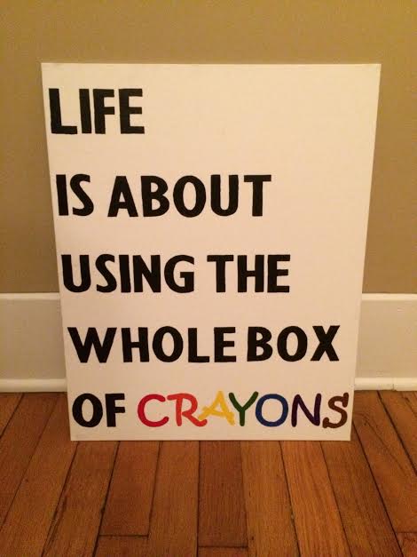 I whipped up a little painting this weekend to hang in my upstairs hallway as a reminder to live life to the fullest. I plan on using all of the crayons I have been blessed to have in my box this year: