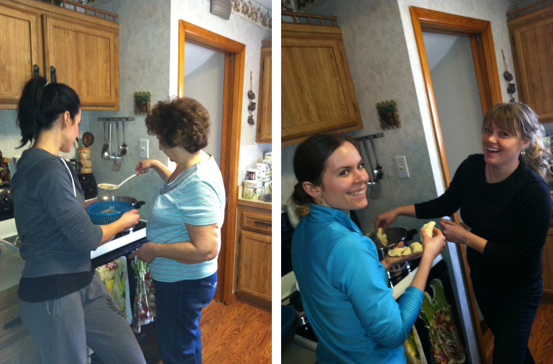 A killer breakfast, friends and pierogies; what a great way to kick-off a Saturday! I am beyond blessed to have an amazing friend (Jenny) who is a tall, beautiful, adventurous, Polish girl who will be, mark my words the next Katie Couric. Naturally, when you have a Polish friend pierogies come up in conversation. Over dinner one night a few of us girls started discussing our love for these heavenly, potato-filled pockets of dough. So we were thrilled when Jenny invited us over to learn how to make authentic polish pierogies from two of the best in town, Mama Popis, Jenny’s Mom, and Grace, Jenny’s aunt. You should have seen Jared’s face when he found out I was not only going to learn how to make pierogies, but also bring home a few dozen from the cooking lesson. So this past Saturday we woke up early, wore our stretchy yoga pants and met at Mama Popis’ to learn the art of pierogi making.
