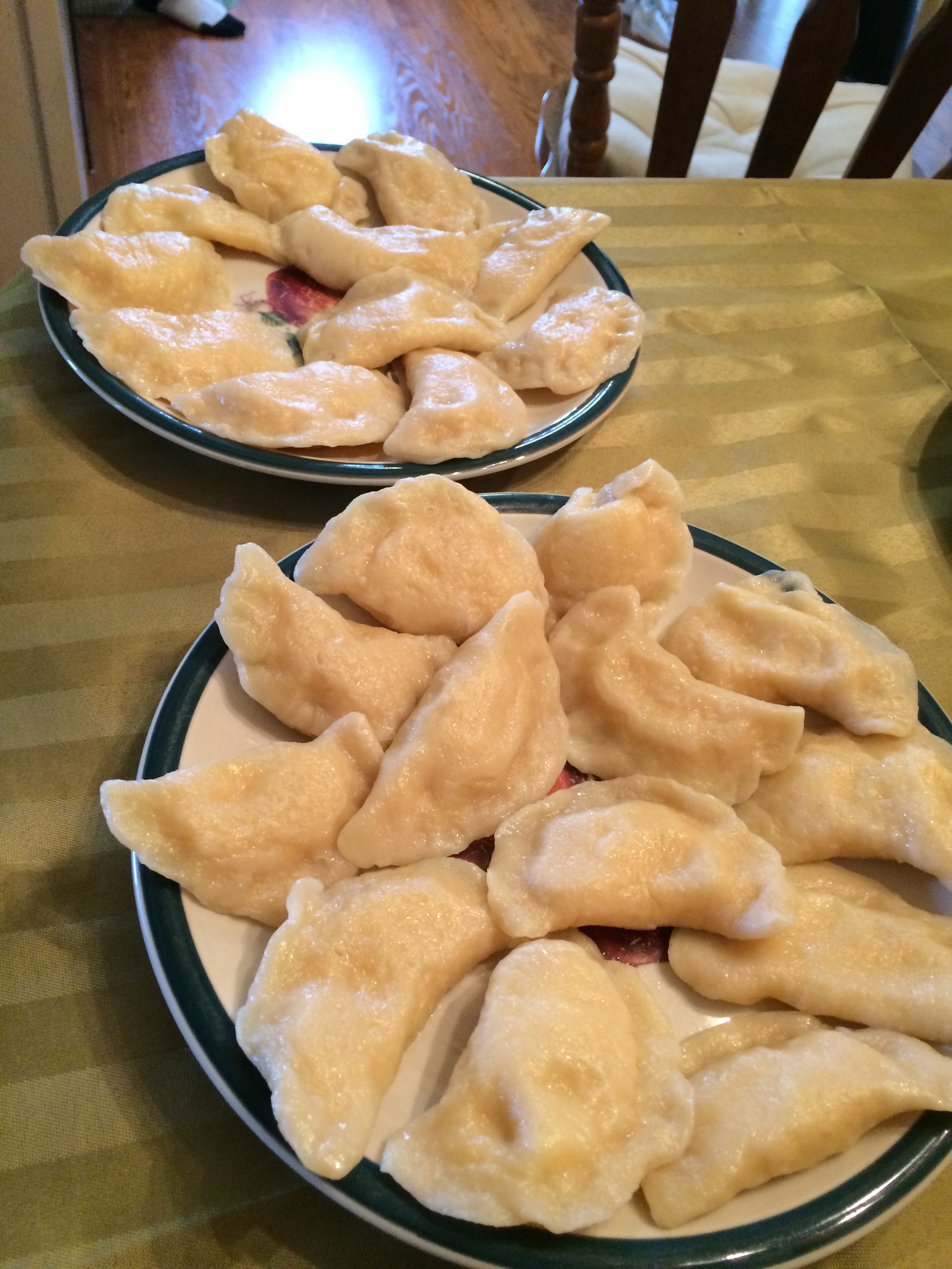 Grace also made her own pierogi filling which consisted of sauteed onions and farmers cheese (cottage cheese).